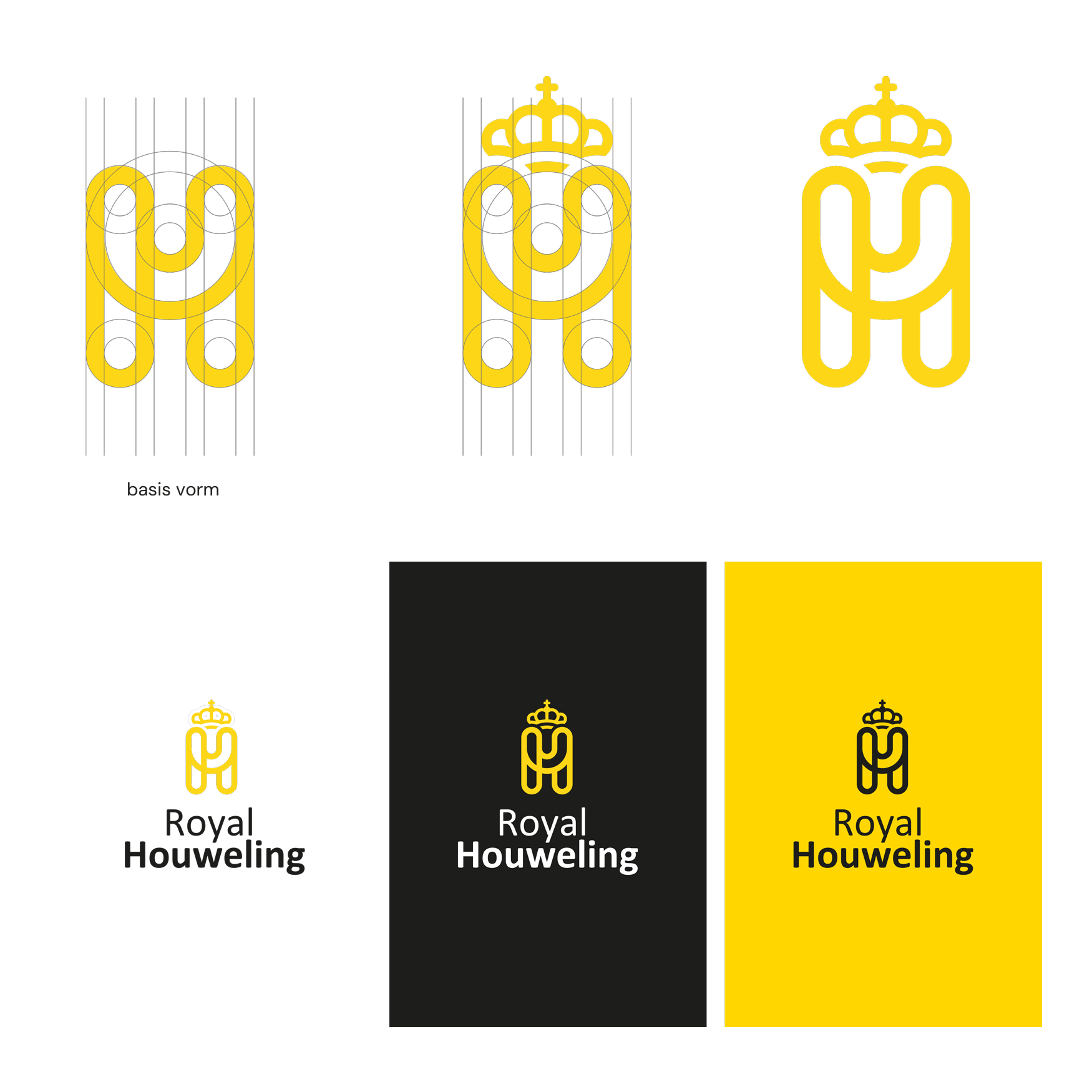 Het beeldmerk hebben we aangevuld met een kroontje dat volledig aansluit op de bestaande vormentaal. De vorm, lijnvoering en stijl zijn in dezelfde familie ontwikkeld, zodat dit heel natuurlijk aanvoelt. In verschillende fasen hebben we schetsen en varianten uitgewerkt en verfijnd tot het kroontje naadloos aansluit bij het oorspronkelijke logo. Het vernieuwde logo is een evolutie van het bestaande ontwerp. De basis en herkenbaarheid blijven intact, alleen de naam en het kroontje markeren de nieuwe status van Royal Houweling. Een kleine aanpassing met grote symbolische waarde.